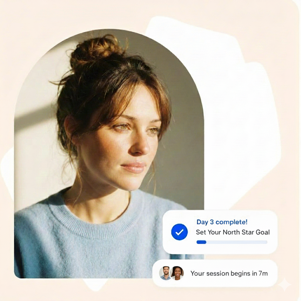 A guided, expert-designed system that elicits therapy-level insights and converts it to specific, weekly action steps in alignment with your core goals